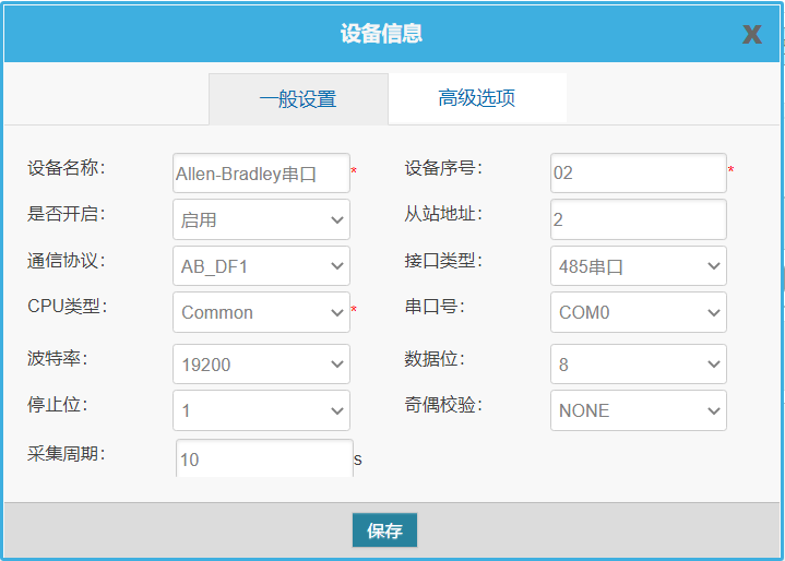 配置协议、通信参数和采集周期
