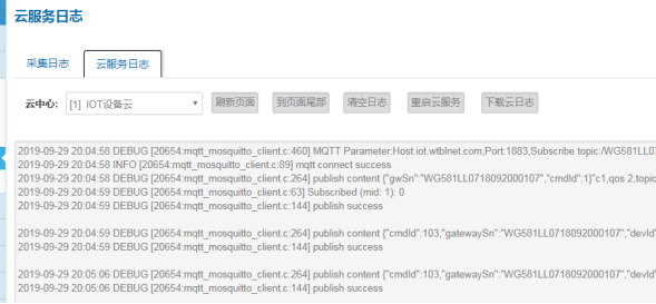 云接入日志用于诊断接入到云平台的通信链路情况和数据报文情况。查阅路径:网关---网关日志—云接入日志。