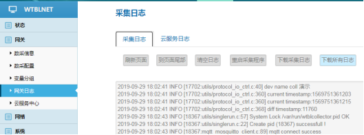 采集日志用于诊断网关采集现场设备的通信情况和报文收发情况、以及远程配置交互等情况。