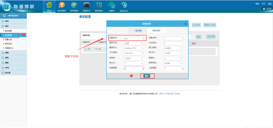 在网关数采配置中添加设备:设备名字要对应物影子名称