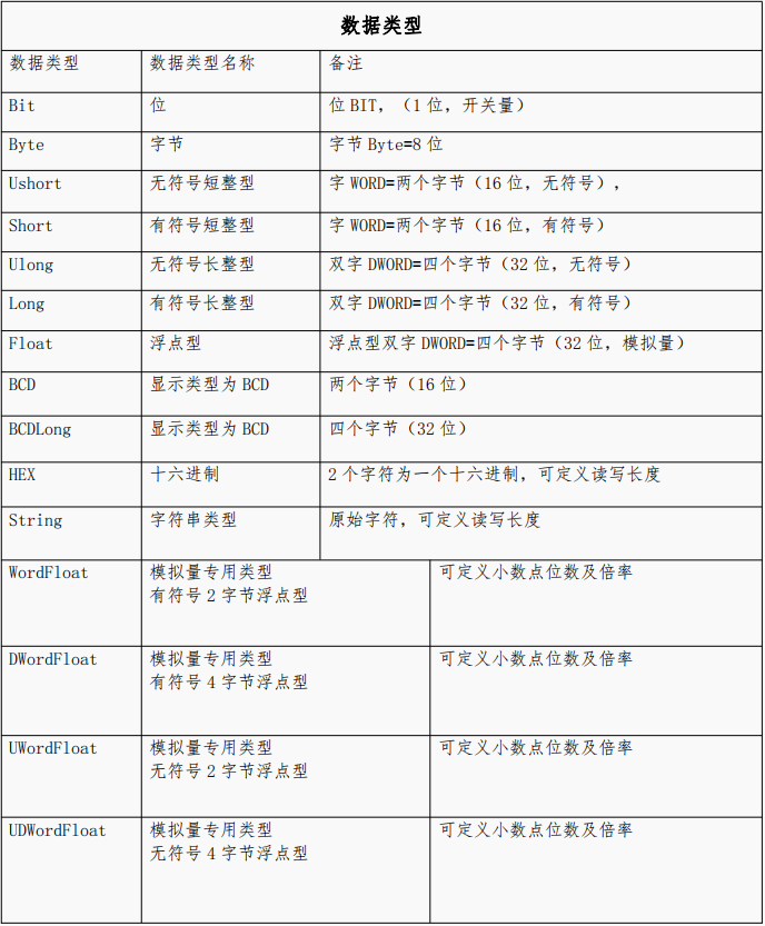 下载中心 视频中心 常见问题 售后服务 工业网关 设备快线 数据云平台 联网设备 问答百科 网关支持采集的数据类型有哪些? 时间:2022-10-26 09:39:53 点击:5767 关键词:工业网关,数据采集,数据类型 问题:网关支持采集的数据类型有哪些? 回答:网关支持采集的数据类型如下表 : 上一篇:工业智能网关会运行时会自动重启怎么处理? 下一篇: 网关采集modbus协议设备时,寄存器类型和地址如何选择?