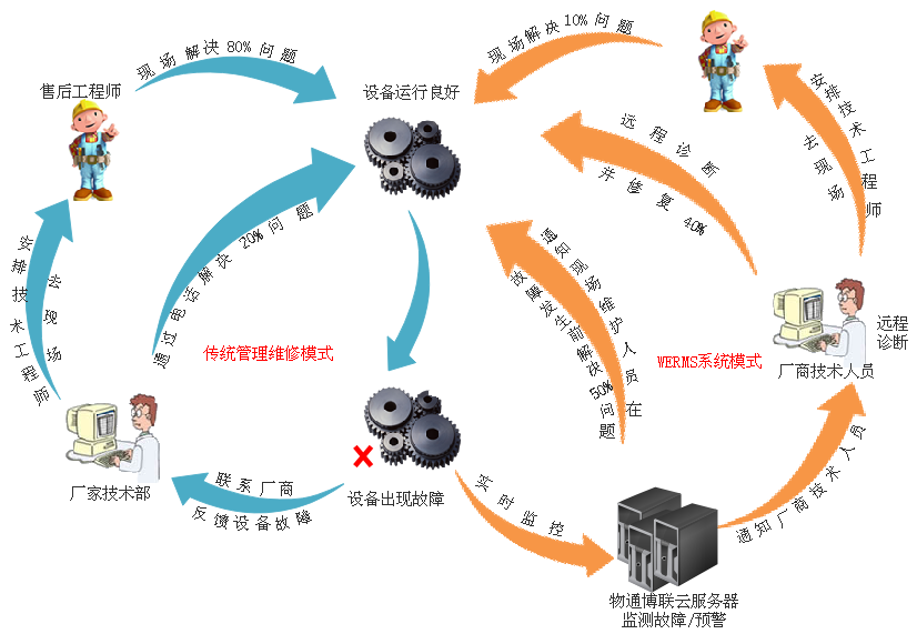 系统可以为客户给予海量的重型工业机械设备接入及客户访问机制,让重型工业机械设备厂商像在现场一样可以随时随地对设备进行编程,升级,控制等操作;随时分析其销售出去的设备运行状态,所处位置等实时数据,给予相关远程i、故障报警和预警功能,避免故障发生后的损失。同时,在进行设备远程监控、远程维护的过程中收集大量设备运转参数,为设备制造商的后续产品改进设计给予更多分析数据,成功的帮助企业根据现有数据预测未来的开展趋势,给企业带来了更快的速度、更高的效率、更低的成本、更具远见的洞察力。