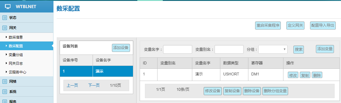 网关---数采配置---添加设备---添加变量---重启采集程序并生效新的配置
